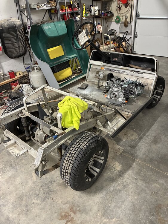 I have a ‘91 Club Car DS that I’m going to refurbish. The motor still runs but it is leaking oil around the crank seals and it has some vacuum leaks that make it doggy. I bought a HF 420 Predator motor to swap in. My plan is to keep it mostly stock because it’s my daily use cart for actual golf. I have a couple other carts to hotrod once I figure shit out with this one. I also figure that if I document it here I will be motivated to keep after it. Here’s a dirty and clean picture selection that shows the HF motor. I’m waiting for ball joints and bushings to arrive so I can upgrade the suspension. New shocks and I’ll be ready to move on to a motor mounting adaptor.