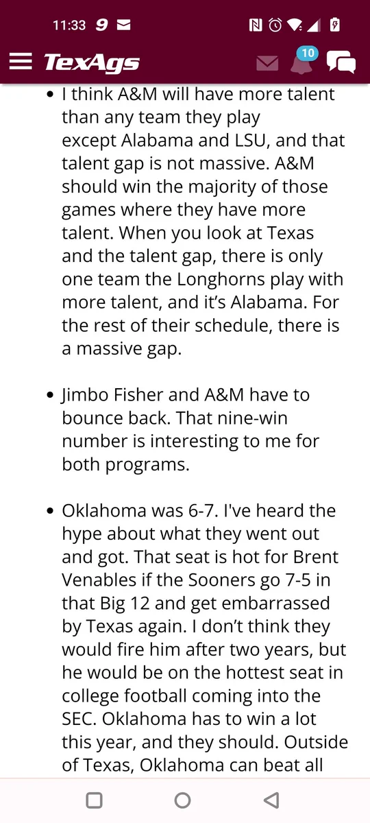 You know things are bleak when the only thing TexAgs can come up with is “our recruiting will turn around if we win this year” as if they won’t suck again and the current season ever has a big impact on that year’s recruiting class. They are absolutely fucked.