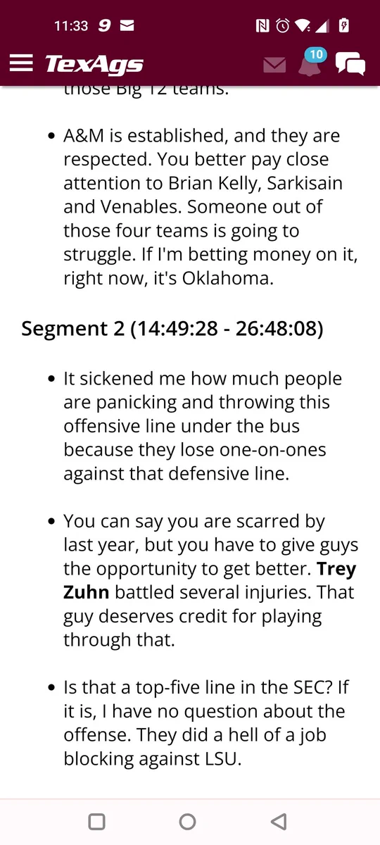 It is still crazy to me that the aggies are as thin as they are across the board.