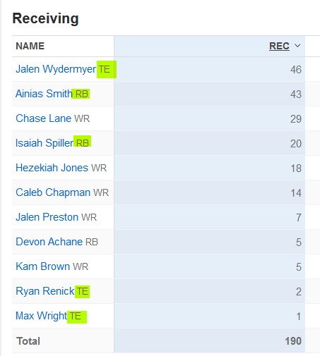 someone named Ryan Renick (walk on?) got 2 catches